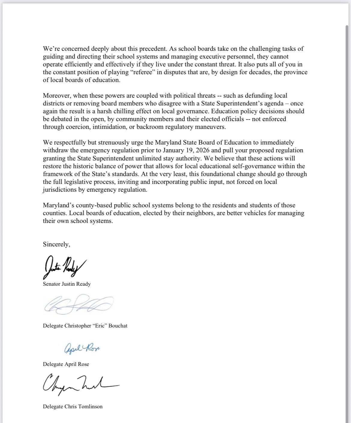District 5 Delegation Supporting Local Control – Calls on MSDE to Reverse Bad Regulation: