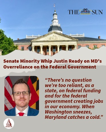 Also – I was interviewed by Spotlight on Maryland for the Baltimore Sun and Fox 45 about how dependent Maryland is on the federal government for our overall economy and ideas on what we needed to do to change that. The interview mostly focuses on my criticisms but I and our Senate Republican Caucus have some very specific (and realistic!) proposals for fixing it that I will be laying out more in depth soon in an editorial. You can read the Spotlight on Maryland piece and watch news story by clicking here.